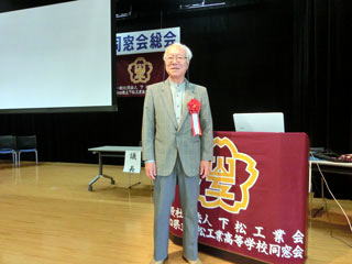 平成29年度定時総会報告書 定時総会 1.開催の日時及び場所 平成29年5月20日(土)13時〜14時 下松市大字西豊井1247番地(下松駅南) きらぼし館(きらぼしホール) 2.会員の現在数 1,700人 議決会員数 1,542人 うち出席者 102人 書面議決者 1,430人 3.議 事 1号議案 平成28年度 事業報告 2号議案 平成28年度 決算報告並びに監査報告 3号議案 平成29年度 事業計画(案) 4号議案 基本財産取り崩しについて 5号議案 平成29年度 予算(案) [講演] : 河村 正浩講師(C39) 4.総会の経過 1) 議長は出席会員の中から石川政利氏(機械科昭和55年卒)が選出された。 2) 議事録署名人並びに書記指名石川議長は、定款16条により下記の者を指名した。 議事録署名人は今総会より議長と出席理事の記名押印となります。 書 記 工業化学科 昭和46年卒 久野 隆弘 氏 3) 議事の経過の概要 1号議案と2号議案は関連するので、一括提案。石井道明夫監事が監査報告し満場一致をもって承認された。 3号議案 提案の上満場一致をもって原案どおり承認可決された。 4号議案 提案の上満場一致をもって原案どおり承認された。 5号議案 提案の上満場一致をもって原案どおり承認された。 記念講演 今年の記念講演は、藤井克先生氏(C35)をお迎えし、「幸せを運ぶ コウノトリの復活」について記念講演を頂く予定でした、 体調不良で、中止の申し出あり、急遽河村会長に講演を頂くことになりました。 緊急なことでもあり、事務局の変更は大変で したが、河村正浩先生(C39)に「俳句セラピー ひらめきと俳句で元気溌剌 頭の活性化」と言う演題で講演を頂きました。 俳句と言うと,我々にとって日常あまり縁も無く関心ないことでしたが、認知症予防に効果的で、俳句を考える事で頭(脳)を 活性化させ「ボケません!」とお話を伺い、次第に高齢化が進む我々にとって、考える一助になりました。 今回は急遽の対応 で、 河村会長も準備に大変だったと思います。 素晴らしいご講演有り難うございました。 |