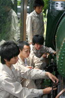 今年で製造から100年になるミニSL、下工弁慶号を図面化しようと下松工高システム機械科の3年生4人が10日、下松市役所にある下工弁慶号の寸法採りを始めた。卒業前の課題研究として取り組むもので、完成した図面は同市にも贈ることにしている。