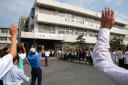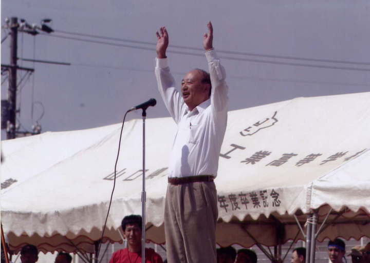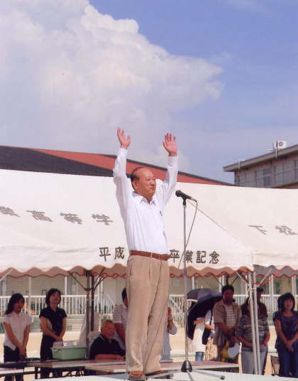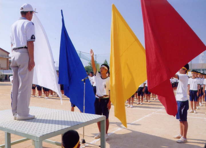 国旗掲揚、優勝旗返還、校長、同窓会会長あいさつ