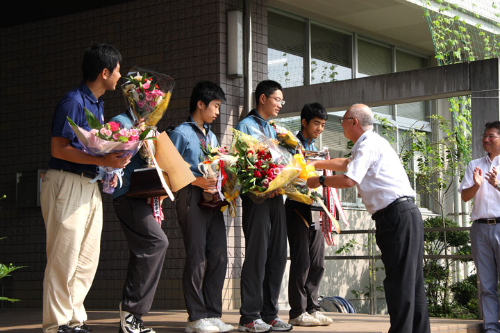 軟式野球部は、開会式で神宮球場を堂々行進し、1回戦は宇都宮工業高校をノーエラーの3−1、2回戦はくまもと清陵高校を2−0、3回戦は戸塚高校をノーヒットノーランの10−0で勝利しました。