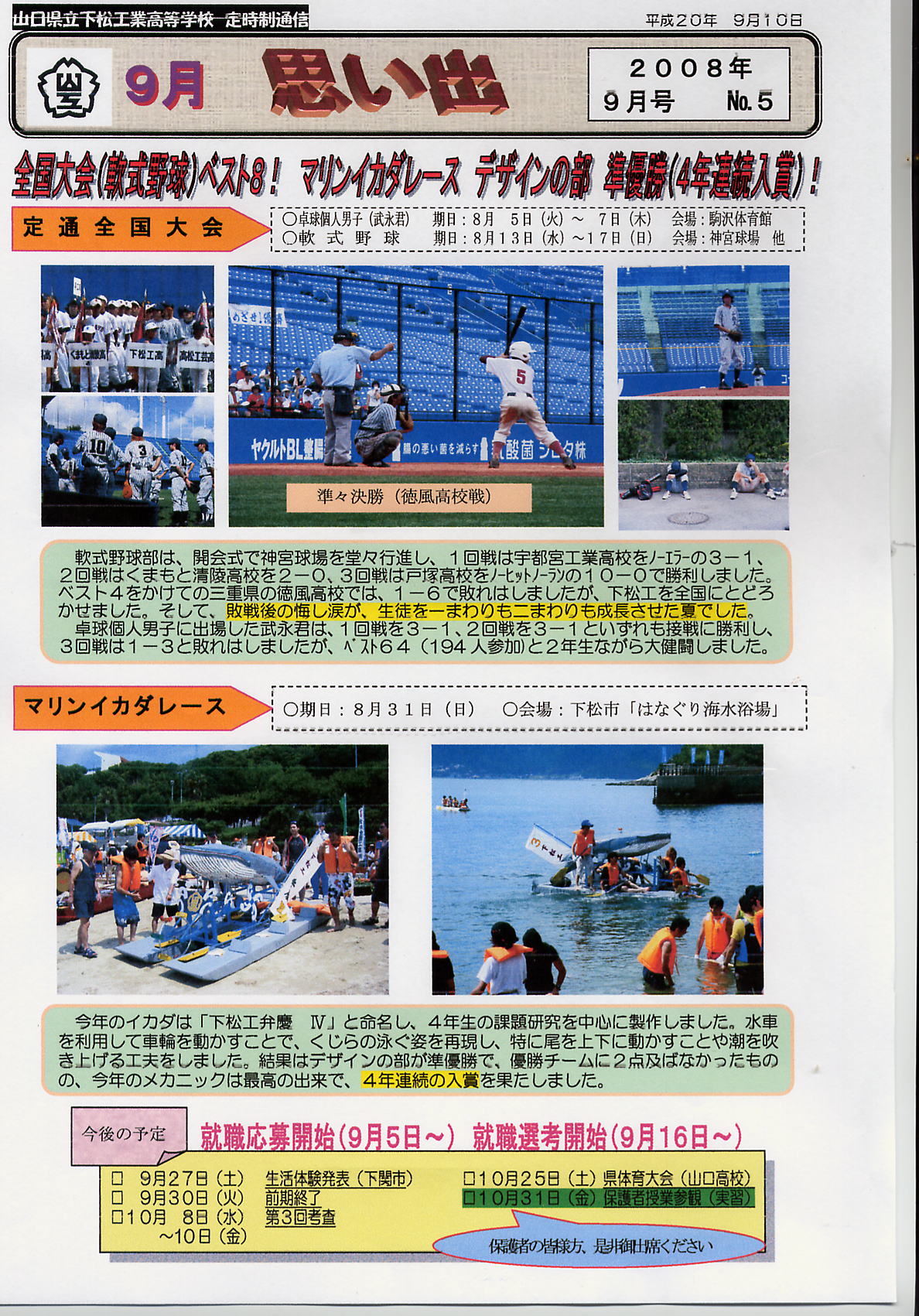 ☆下松工業高校定時制通信 「9月 思い出」より