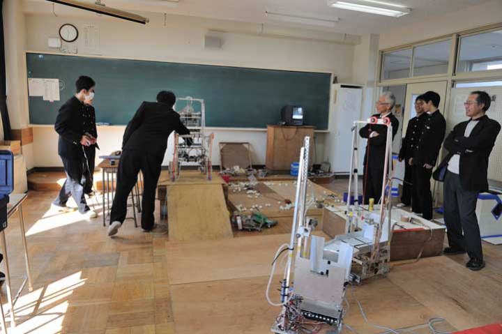 4人は河添裕紀君をリーダーに、片田寛和、原淳巳、山根恵介君で、この日は園部雅史教諭の指導でメジャーなどで測定した。来月末まで毎週木曜日に続ける予定で、7月からはCAD(コンピューター製図システム)で図面化に取り組み、課題研究発表会の来年2月までには完成させるという。