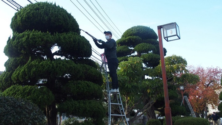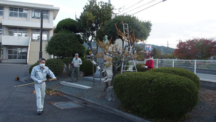 *母校剪定作業 中津井 均 (藤田文明、松村 伸)