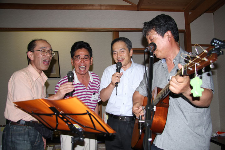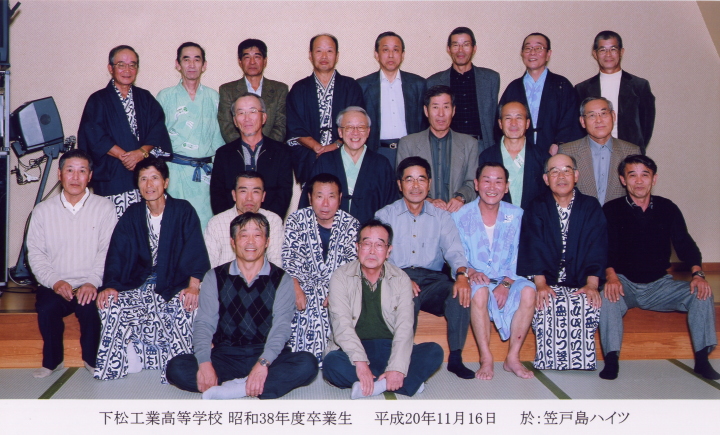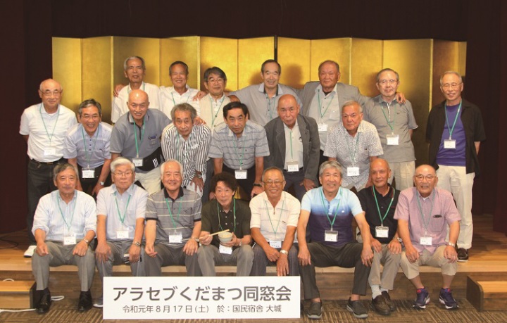 M43年卒 クラス会『アラセブくだまつ』開催 日 時 : 令和元年8月17日(土) 場 所 : 国民宿舎「大城」 参加者 : 22名 去る8月17日(土)、『アラセブくだまつ』同窓会(M43クラス会)を開催しました。何と52年 ぶりの再会で「あんた誰かいの?」という会話があちこちで聞かれましたが、名札を見て「お お!○○君!」とすぐにち解けました。代表世話人挨拶の後参加者22名は、まず6名の物故 者に一分間の黙祷を捧げました。その後近況報告で大いに沸きます。一人3分という時間も 忘れ、大爆笑することもしばしばでした。都合で参加できなかった方もスライド紹介され、卒業 当時の写真が映し出されると大歓声が聞かれ、既定の2時間はあっという間に過ぎました。 会場の国民宿舎『大城』樣のご好意で30分延長して頂きましたので、ギター演奏によるショ ータイムや校歌斉唱なども実施。大いに盛り上がりました。下松工業会から提供して頂いた 記念のタオルも、およそ10分で完売致しました。 「来年もぜひやろう!」と口々に叫び、互いの健康を気遣いながら名残を惜しみつつ散会しま した。次年度も同時期に開催する予定です。今回参加できなかった皆さん、改めてご案内致し ますが、次回は是非ともご参加下さい。お待ちしております。 アラセブくだまつ同窓会 代表世話人 浅原秋徳 事務取扱者 中原道雄 |