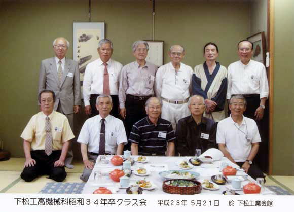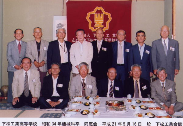 | 機械科35年卒 クラス会 日 時 : 令和元年5月15日(水) 場 所 : 下松工業会館 参加者 : 9名 昭和31年定時制機械科に入学、当時定時制としては異例の1クラス42名。卒業後、昭和41年に 第1回の同窓会を開催して、以後8回開催し、今年は令和元年という記念すべき年ですが、喜寿を過 ぎた我々に取れば将来を考えると悩む年頃です。今回は年齢も考慮し、アルコール類は少なくして、 学生時代のことを語り合い、最後はお決まりのカラオケ店で自慢の喉を披露し、お互いの健康を願い 散会した。 |