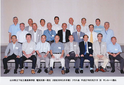 電気科52年卒 還暦同窓会 日 時 : 令和元年8月11日(日) 場 所 : 母校・和食処「はらだ」 参加者 : 23名 毎年徳山にて忘年会をしていますが、今年は還暦と令和元年を記念し、母校訪問を兼ねた同窓会を 開催しました。母校では松本校長先生が出迎えてくださり、当時から変わらない体育館や、様変わりした 実習室などを案内・説明をして戴き感慨に浸りました。 宴会では、幹事より欠席者からのメッセージと級友情報を披露して戴くと共に、参加者からは近況を 報告。最後にまたの再会を祈って、三本締め、記念撮影をしてお開きとなりました。 |