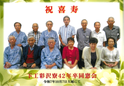 下工彩沢寮42卒同期会 2025年10月8日 最終更新日時 : 2026年1月20日 assoc_kudakou 令和7年10月7日、下松市笠戸島にある国民宿舎大城を会場に、彩沢寮で共に過ごした42卒同窓生による同窓会を開催しました。昭和24年14名で始めた第1回の同窓会から今年で4回目。寄る年波には抗えないものの、一堂に会すると学校生活、寮生活、舎監の先生との思い出話に時間が経つのも忘れるほど、和やかな雰囲気の中で一時を過ごしました。
